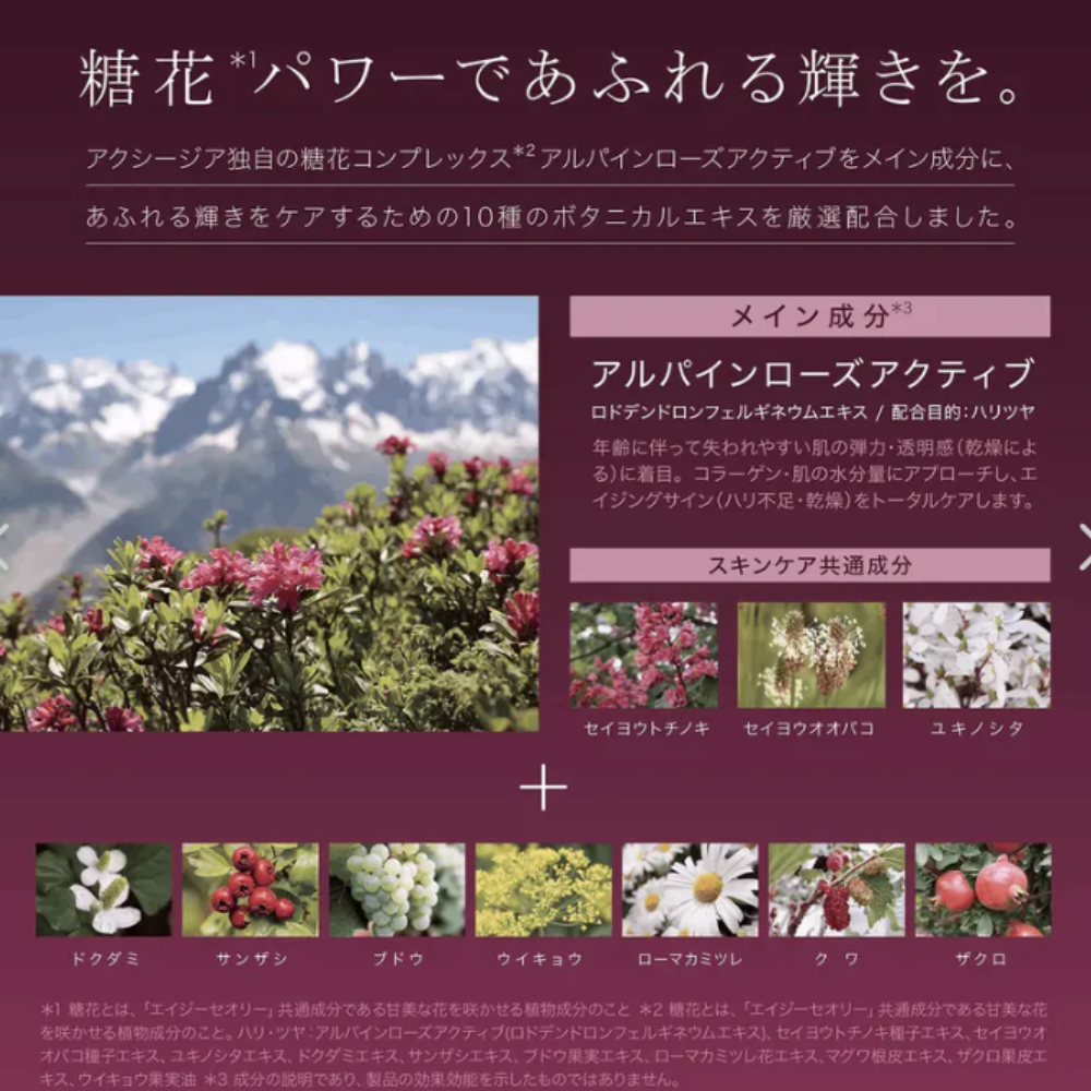 | المكونات الرئيسية | توكا ميكس (11 نبات)، هيالورونات الصوديوم، حمض الهيالورونيك المتحلل، أسكوربيل جلوكوزيد |