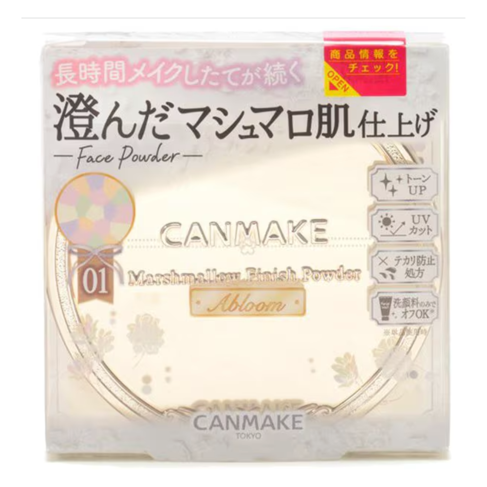 CANMAKE Marshmallow Finish Powder ~Abloom~ هو إعداد ياباني ومسحوق وجه أكثر إشراقًا يوفر لمسة نهائية لامعة وناعمة من الخطمي في خطوة واحدة دون عناء. متوفر في ثلاث مجموعات ظلال لتصحيح البشرة - 01 أغلى باقة, 02 ساكورا تول، و 03 إكليل بلوميريا - يتميز كل منها بخمسة ظلال لتصحيح الألوان مصممة لتوحيد اللون وإضفاء إشراقة من الداخل. يتكون من مسحوق ممتص للدهون يدوم طويلاً، و15 مكونًا للعناية بالبشرة لمنع الجفاف، وأصباغ معدنية طبيعية يمكن غسلها بغسول الوجه العادي، وعامل حماية من الشمس 19 PA++ - جميعها خالية من العطور.