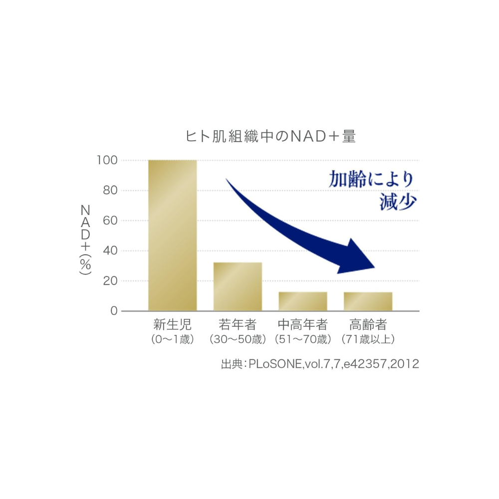 زيت طعام معالج (جوز الهند/أصل النخيل، الفلبين/ماليزيا/إندونيسيا؛ معالج في اليابان)، بيتا نيكوتيناميد أحادي النوكليوتيد (NMN، معالج في اليابان)، الإنزيم المساعد Q10 المخفض (أوبيكينول، معالج في اليابان)، الإنزيم المساعد Q10 (يوبيكوينون، معالج في اليابان) / هيدروكسي بروبيل ميثيل سلولوز (HPMC)، إستر الجلسرين، مضادات الأكسدة (حمض الأسكوربيك [فيتامين C] - من الذرة؛ كاتشين - من الشاي؛ توكوفيرول [فيتامين E] - من فول الصويا/الأرز)، لون الكراميل