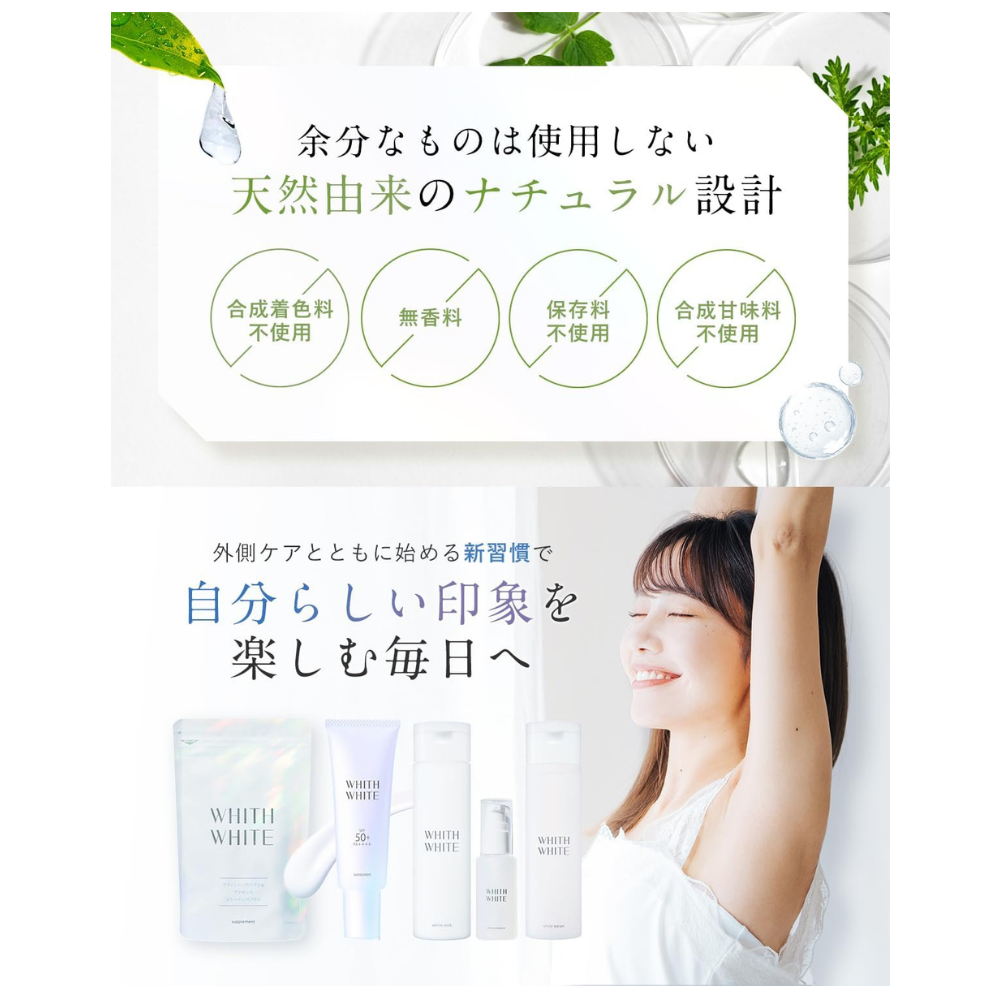 ج: نعم. تم تصميم WHITH WHITE خصيصًا لاستكمال إجراءات العناية بالبشرة الموضعية كإضافة للعناية الداخلية.