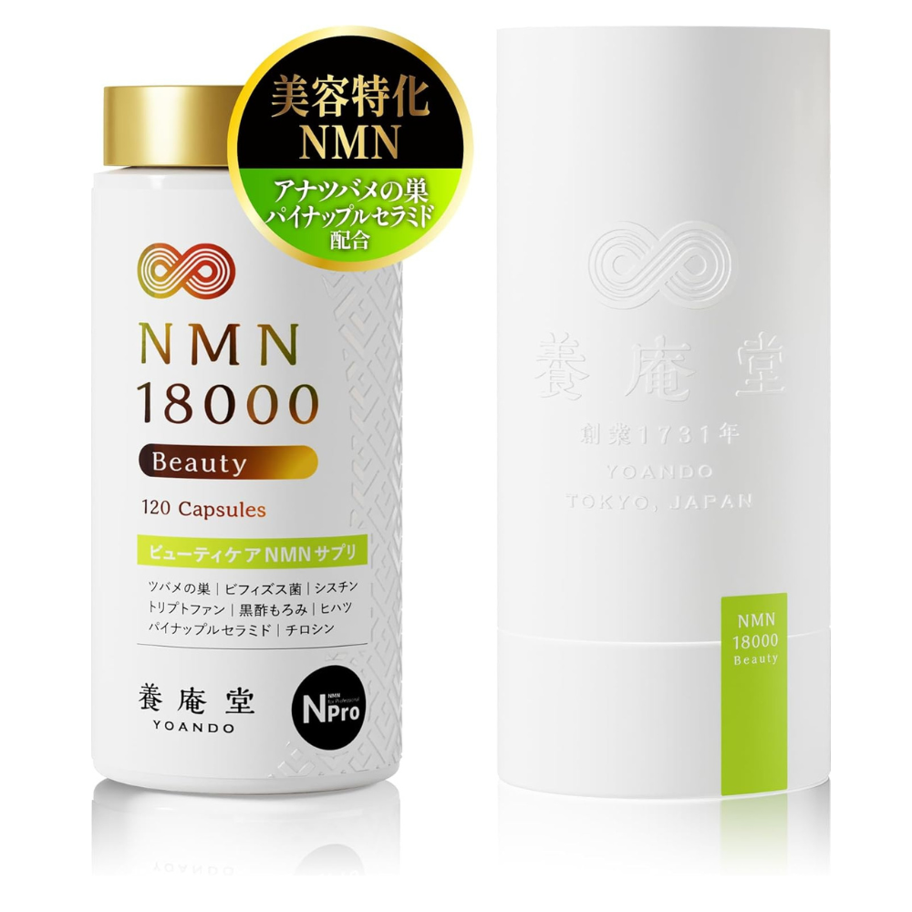 Yoando NMN 18000 Beauty هو منتج الكبسولات الرائد المتخصص في مستحضرات التجميل من شركة Abe Yoando Pharmaceutical - الشركة اليابانية المتخصصة في NMN والتي تعود جذورها إلى عام 1731. توفر كل جرعة يومية مكونة من 4 كبسولات مقاومة للأحماض 600 ملجم من β-NMN فائق النقاء (99.9%) المصنوع محليًا، المخصب بعش الطيور الصالح للأكل والمعالج بالإنزيم النادر (燕窩). سيراميد مشتق من الأناناس، إل-سيستين (لتخليق الجلوتاثيون)، إل-تيروزين، ومستخلص هيهاتسو (الفلفل الطويل) لتعزيز الامتصاص - كل ذلك عبر تركيبة طويلة التأثير مملوكة لشركة Yoando.