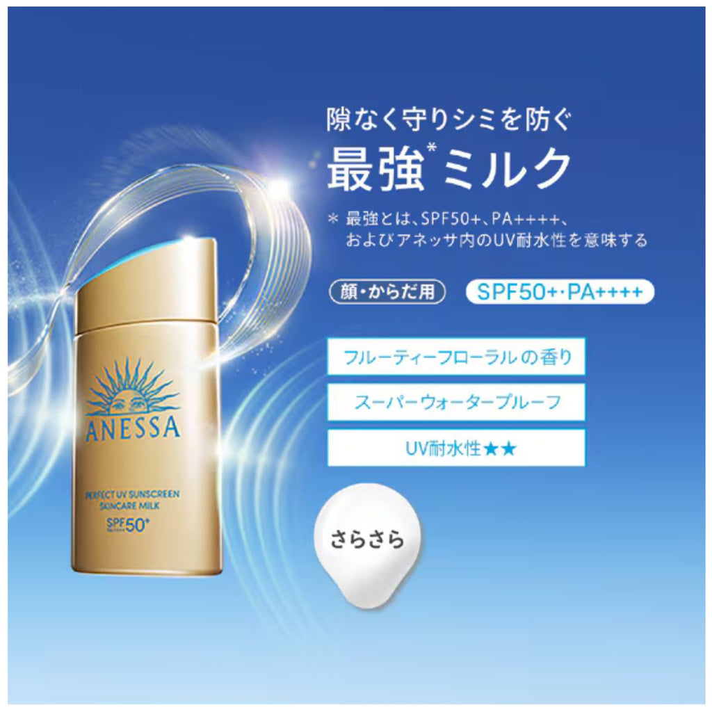 Anessa Perfect UV Skincare Milk SPF50+ PA++++ – Japan's #1 sunscreen for 20+ years. Ultra-light, sweat-proof with skincare benefits.